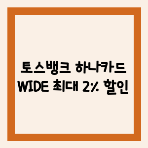 토스뱅크 하나카드 WIDE는 전 가맹점에서 최대 2%의 청구할인 혜택과 연간 최대 120만원의 할인 혜택을 제공하는 혁신적인 신용카드입니다. 토스뱅크와 하나카드의 협력 제품으로 간편한 사용과 다양한 부가 서비스까지 누릴 수 있죠. 이렇게 큰 혜택을 누리면서도 연회비가 합리적이라니, 이보다 더 좋을 순 없습니다.